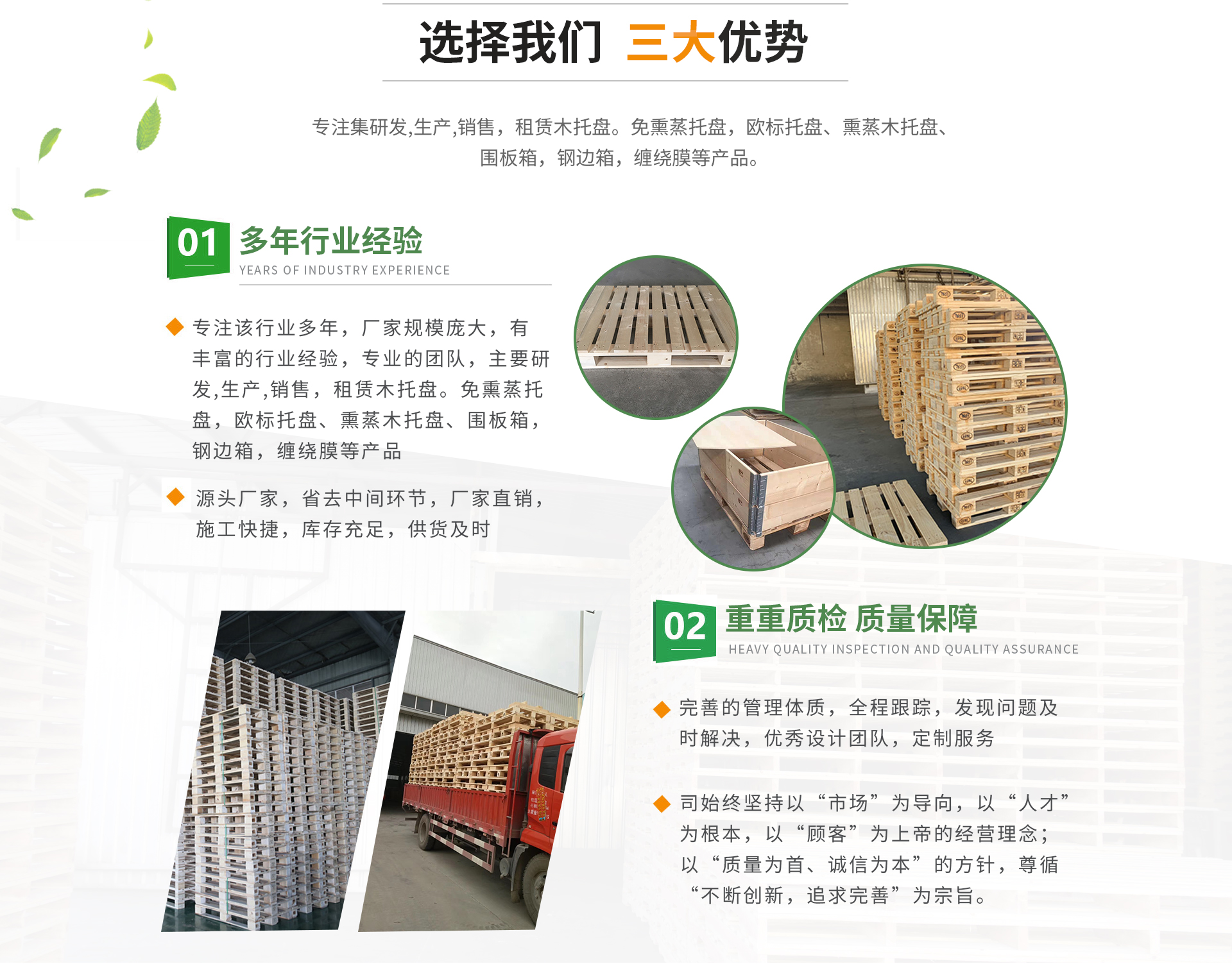 蕪湖奔騰包裝股份有限公司坐落于滬渝高速灣沚出口處3公里,距離灣沚高鐵站6公里,蕪宣客運(yùn)機(jī)場(chǎng)5公里,交通十分便利。我公司是專(zhuān)注集木托盤(pán)研發(fā),生產(chǎn),銷(xiāo)售,租賃的綜合服務(wù)商。本公司生產(chǎn)的免熏蒸托盤(pán),歐標(biāo)托盤(pán)、熏蒸木托盤(pán)、圍板箱,鋼邊箱等產(chǎn)品遠(yuǎn)銷(xiāo)海內(nèi)外。公司本著“以質(zhì)量求生存,以信譽(yù)謀發(fā)展,以服務(wù)拓出路”的服務(wù)經(jīng)營(yíng)理念;重視產(chǎn)品質(zhì)量和服務(wù),為用戶(hù)著想。根據(jù)客戶(hù)需求,及時(shí)送貨。公司始終堅(jiān)持以“市場(chǎng)”為導(dǎo)向,以“人才”為根本,以“顧客”為上帝的經(jīng)營(yíng)理念;以“質(zhì)量為首、誠(chéng)信為本”的方針,尊循“不斷創(chuàng)新,追求完善”為宗旨。本著生產(chǎn)廠(chǎng)家,減少中間流通環(huán)節(jié)的原則,讓利于每位客戶(hù)朋友。我們的產(chǎn)品價(jià)格合理,質(zhì)量過(guò)硬,真誠(chéng)歡迎各方客商前來(lái)業(yè)務(wù)洽談與合作。